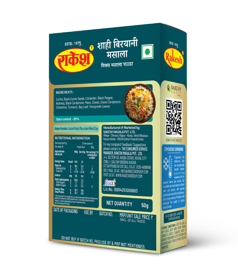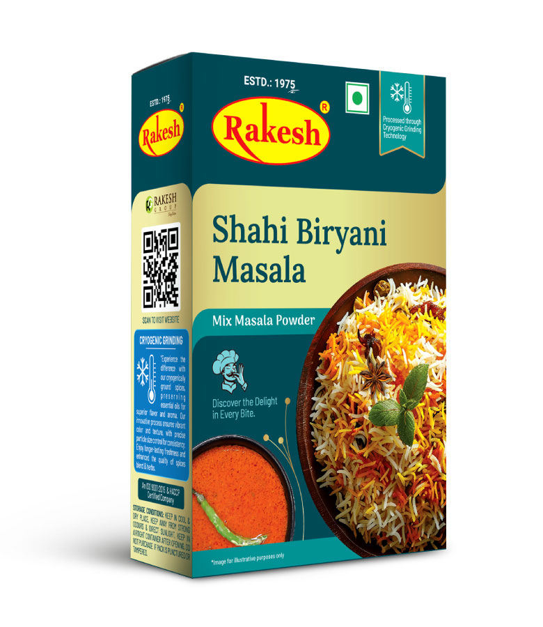 Heat oil or Ghee (200g) in a Pan Over medium heat add finely chopped onions ( 1 piece) and tomato(2 pieces) add 15 pieces of cashew nuts ans fry for few minutes. Add Rakesh shahi Biryani Masala Powder (50g) water (1.9ltr) and salt to taste. Bring the mixture to a boil and add the rice 750g and let the rice cook. Once the rice is cooked, serve the biryani hot.