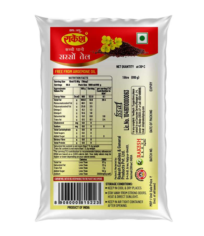 Mustard oil pouch 1 Ltr